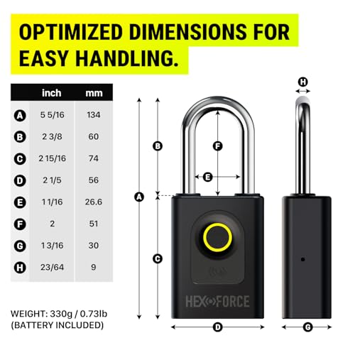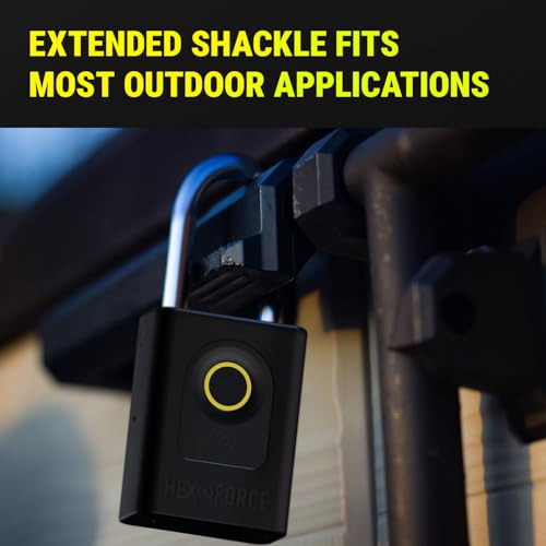 Specification: HEXFORCE G1 Smart Fingerprint Padlock – Heavy Duty Dual-Ball Locking, IP67 Waterproof for Outdoor Storage, Biometric and Bluetooth App Control, Extended Shackle for Shed, Gate, Fence, Toolbox